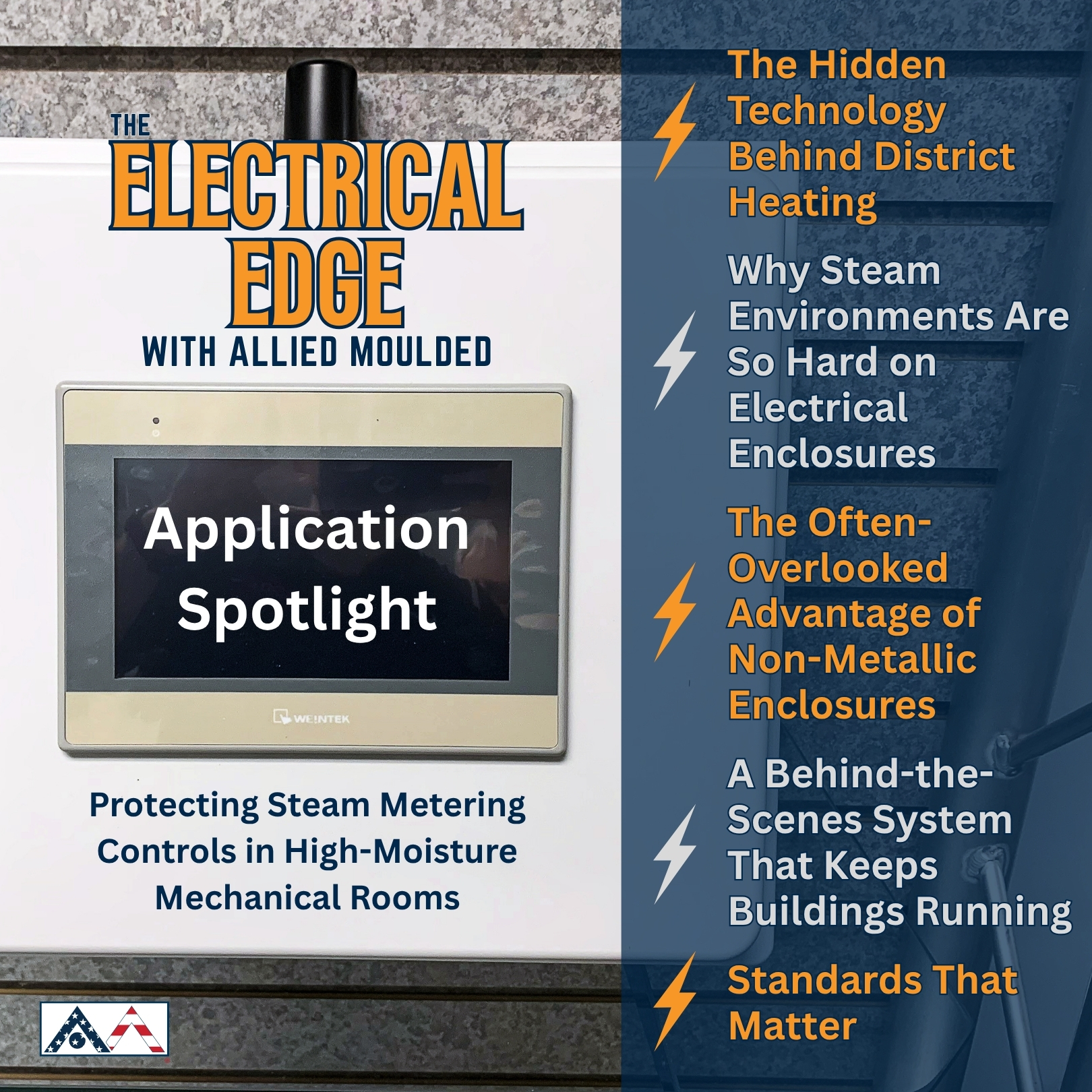 To address the demands of steam metering installations, the integrator standardized on fiberglass AM Series enclosures, from Allied Moulded, designed for NEMA 4X performance.