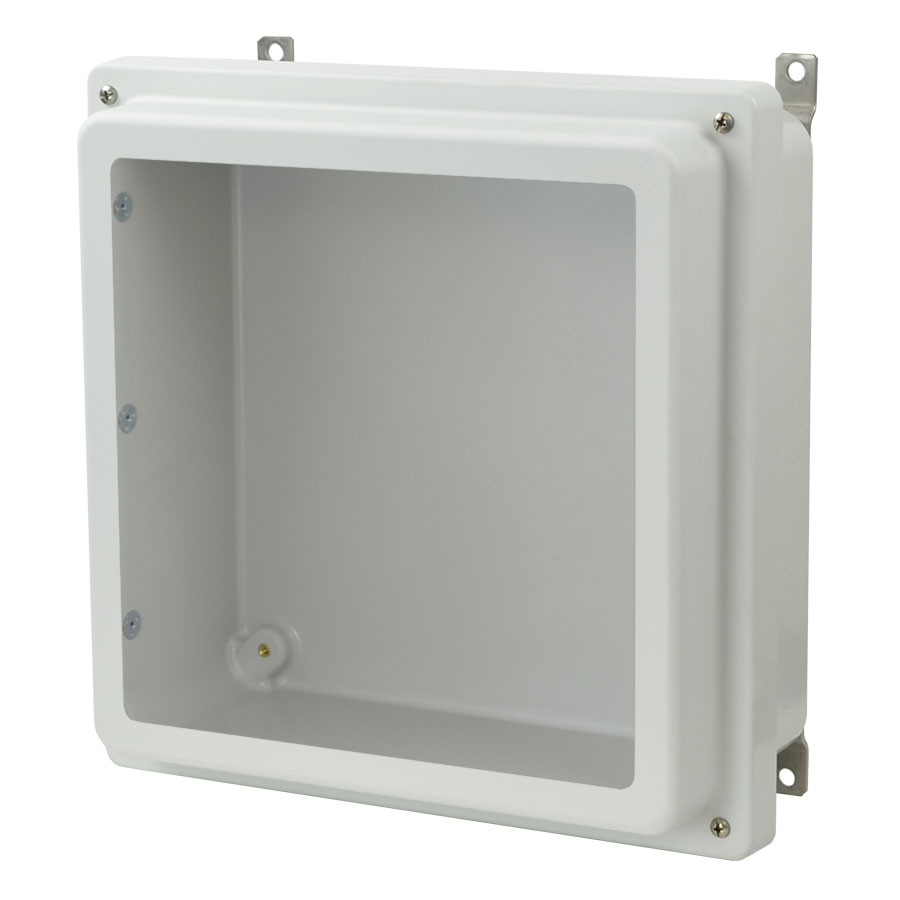 12″x12″x4″ AM-R Series fiberglass wall mount enclosure assembly with raised 4-screw lift-off cover